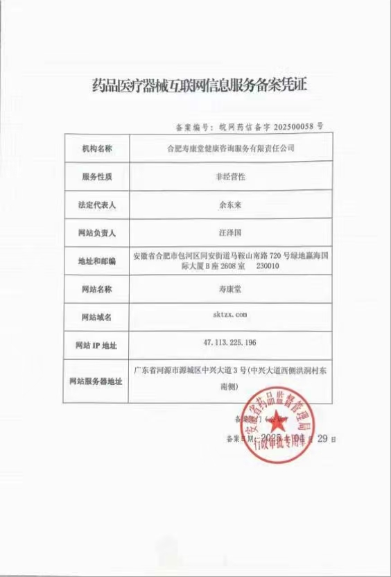 皖ICP备2025082248号-1 | Copyright©2025-2026 合肥寿康堂健康咨询有限公司 |